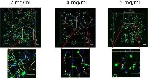 为了更好地了解CTL细胞在外基质中的迁移,研究人员使用牛胶原蛋白在体外构建三维(3D)环境,作为ECM的模型,他们分析了两个献血者在不同浓度的胶原蛋白基质中CTL细胞的轨迹。